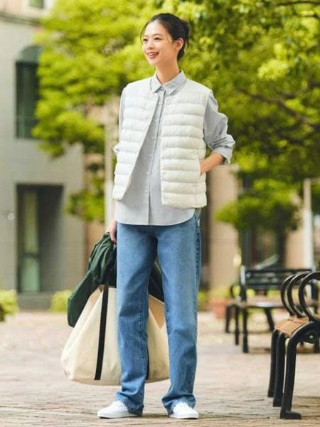 Áo khoác phao gile nữ cổ tròn bấm cúc Puff Tech Uniqlo