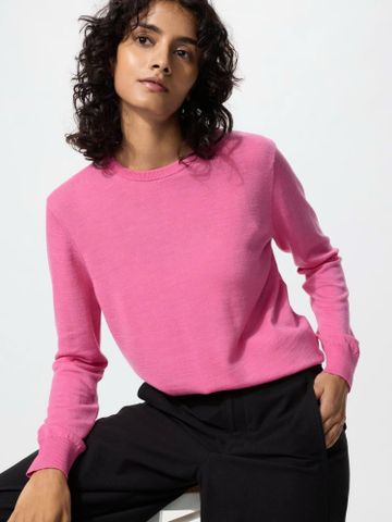 Áo len nữ cổ tròn Extra Fine Merino Wool Uniqlo #478330