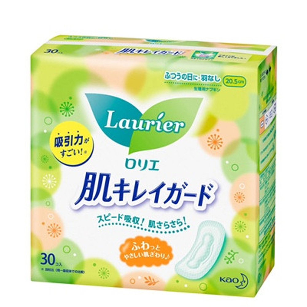Băng vệ sinh không cánh Laurier với chiều dài 20,5cm, 30 miếng/túi.