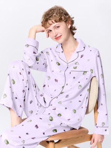 Bộ quần áo ngủ Pijama lụa satin mềm họa tiết trái cây GU #351868